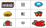 このように、バーが上段に止まった場合は、「ハズレorベルor氷orボーナス」となります。